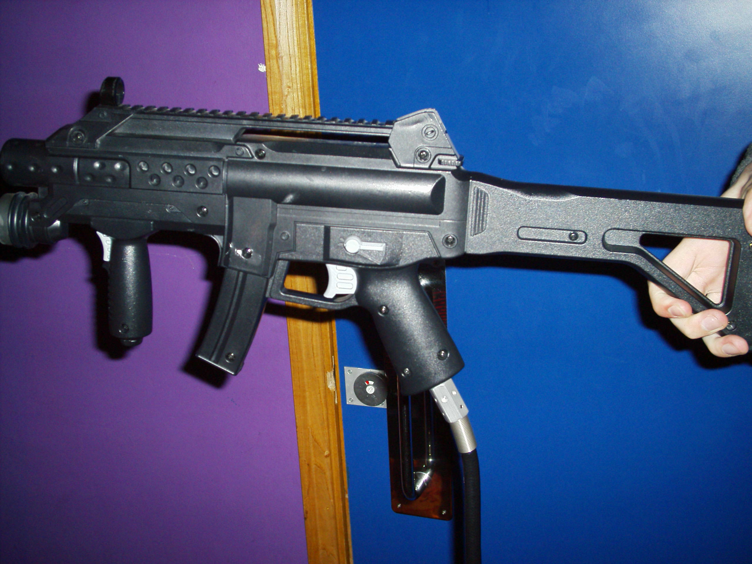 - Suspiciously Ghost Squad-esque gun, lovingly modelled by an off-camera bloke