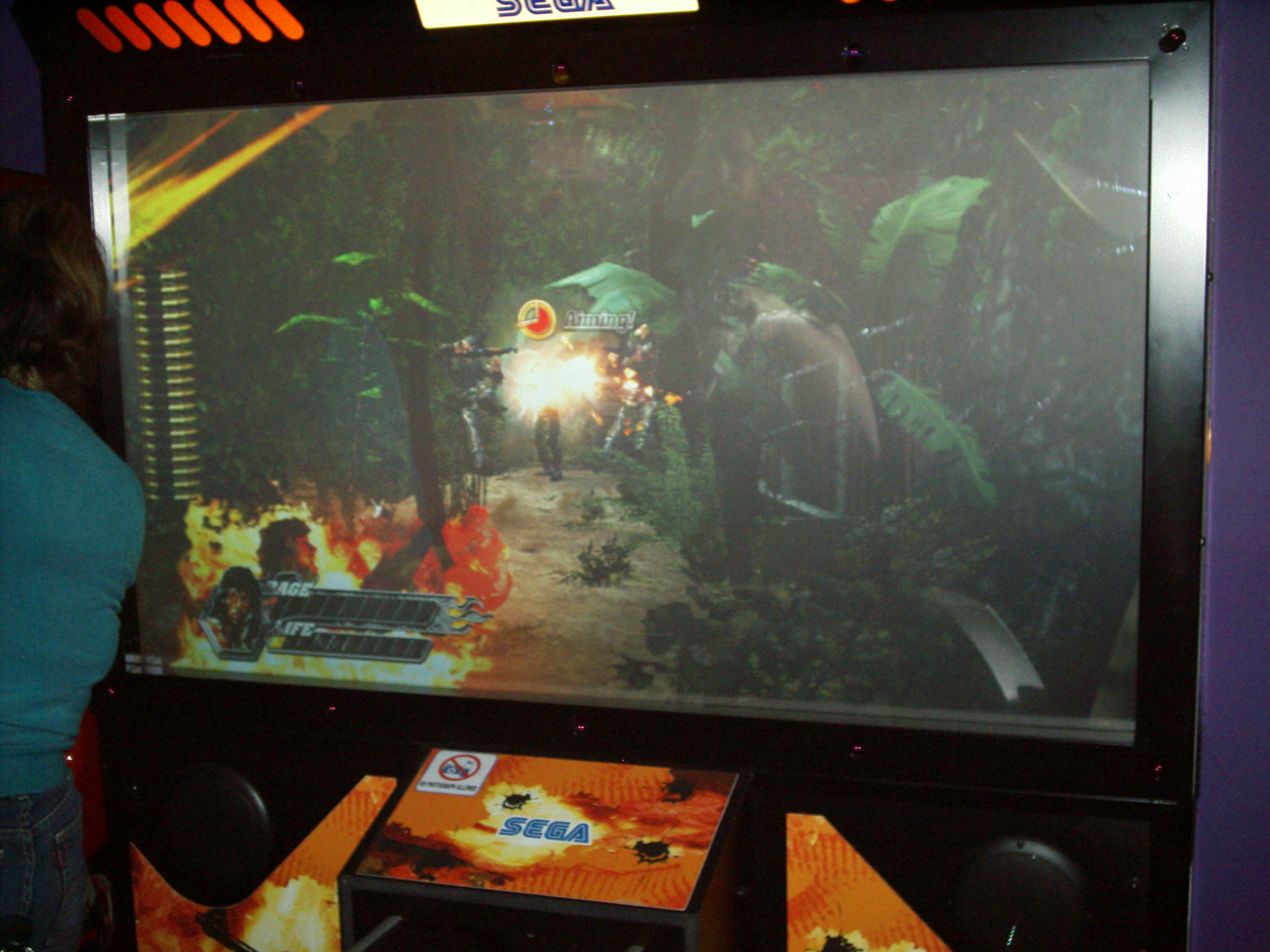 So far, the game is looking like it will be rather good, and the Rambo licence can’t hurt the game any. The machine didn’t see a lot of play while we were at the Bowlplex, but it was a Sunday afternoon with the building mainly filled by families (you can hear one on Fast and the Furious Superbikes in the video). The final game should probably contain at least one more stage, and ny number of changes could be made to the existing material. When the game is ready for launch, we’ll let you know how it turned out!