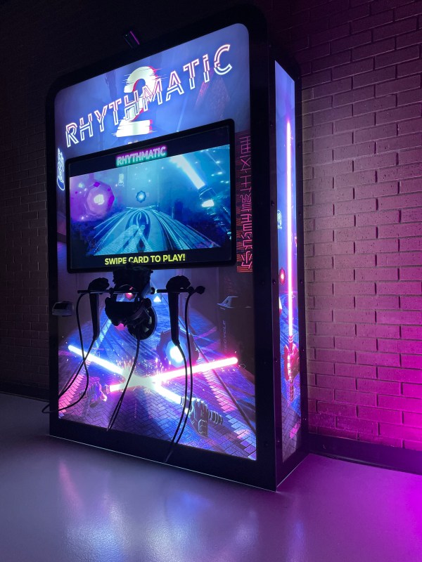This is certainly the most artistic design that VRsenal has produced so far – their other cabinets have lacked specific themes since they can house different games and while they look sleek, they just have been a solid color without a marquee or other markings. Originally they did offer Beat Saber, which Rhythmatic is obviously competing with, but Meta pulled the license for commercial arcade use some time back, which left interested locations high and dry and resulted in the development of this game.