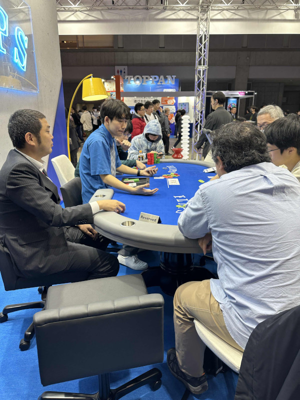 Another relative newcomer to the event, but more arcade-adjacent (and certainly recognisable to those familiar with recent developments) was Genda, who had a GiGO booth naturally promoting the ex-Sega locations. They have been consistently in the news of late for their aggressive M&A approach, which intends to include content creating companies soon… but in the absence of those right now, they took the curious step of filling up the rest of their space with a poker table:
